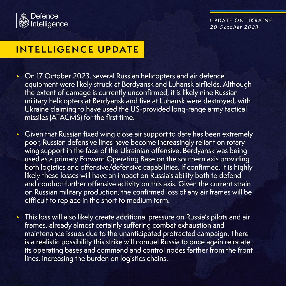 Ukraine decided to use this free play on Friday Oct 20th on Russian Air Bases in Berdyansk and Luhansk. They destroyed around give or take 14 Russian helicopters and air defense systems.