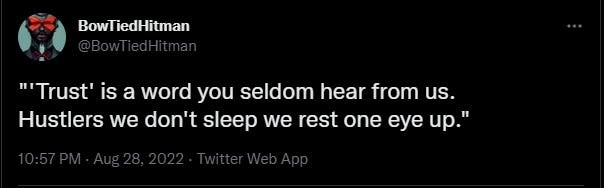“So at thirteen, we'll have our first drink together. Black bar mitzvahs, mazel tov, mogul talk. Look a man dead in his eyes so he know you talk truth when you speak it. Give your word, keep it.”