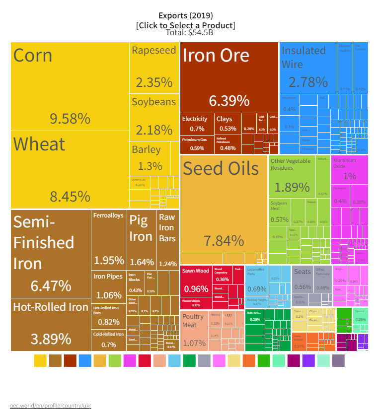 Let’s take a quick dive into Ukraine and what owning it offers you. We’ll start with major exports before Covid. This is data from the OEC.
