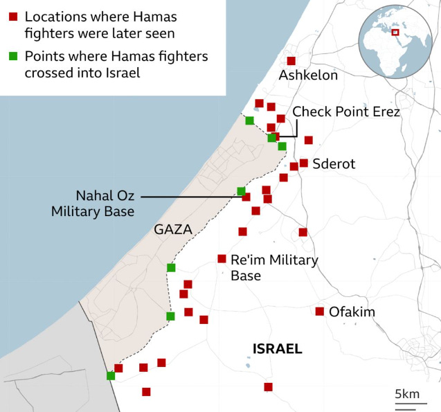 The Hamas fighters successfully breached into Israel and caught them completely off guard. An intelligence failure of the magnitude not seen since the United States got attacked in 9/11, but Hamas and Israel are next door neighbors so it’s even worst.